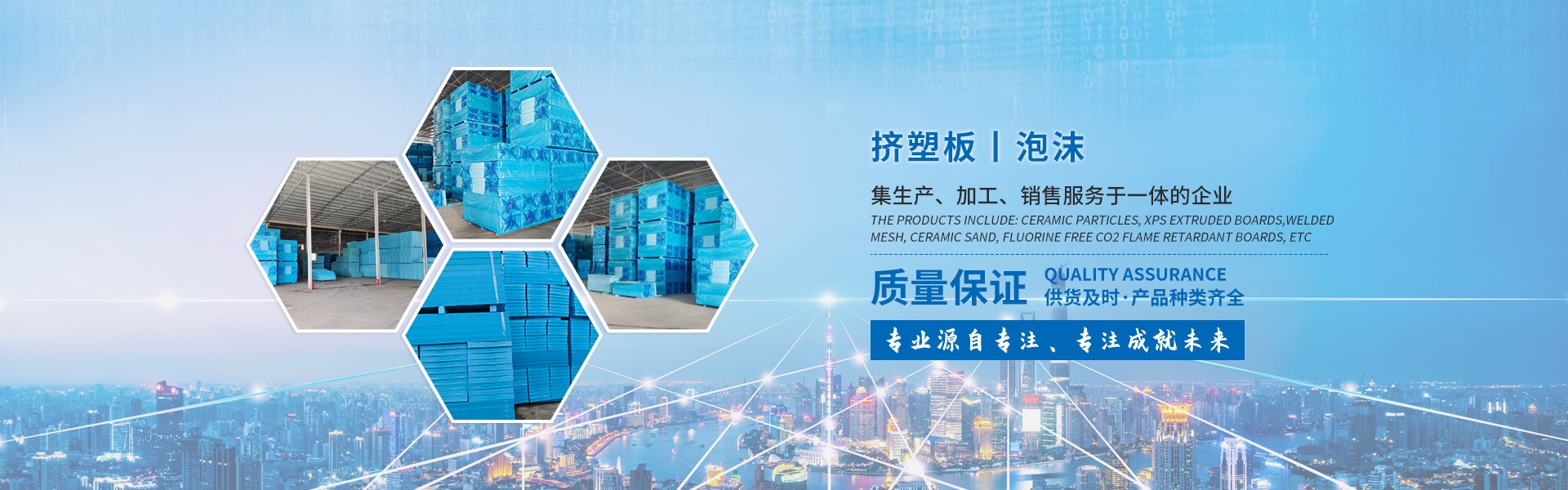 產(chǎn)品有:陶粒、XPS擠塑板、陶砂、無(wú)氟co2阻燃板、擠塑復(fù)合板。配送材料有:碰焊網(wǎng)、專用膠水、泡沫板、巖棉板、玻璃棉氈、珍珠巖、聚酯無(wú)紡布、纖維網(wǎng)格布等。